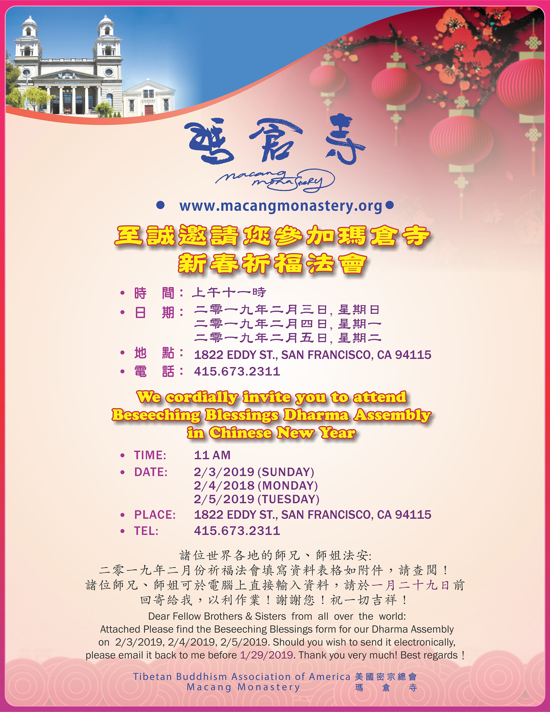 舊金山瑪倉寺二月新春祈福法會邀請