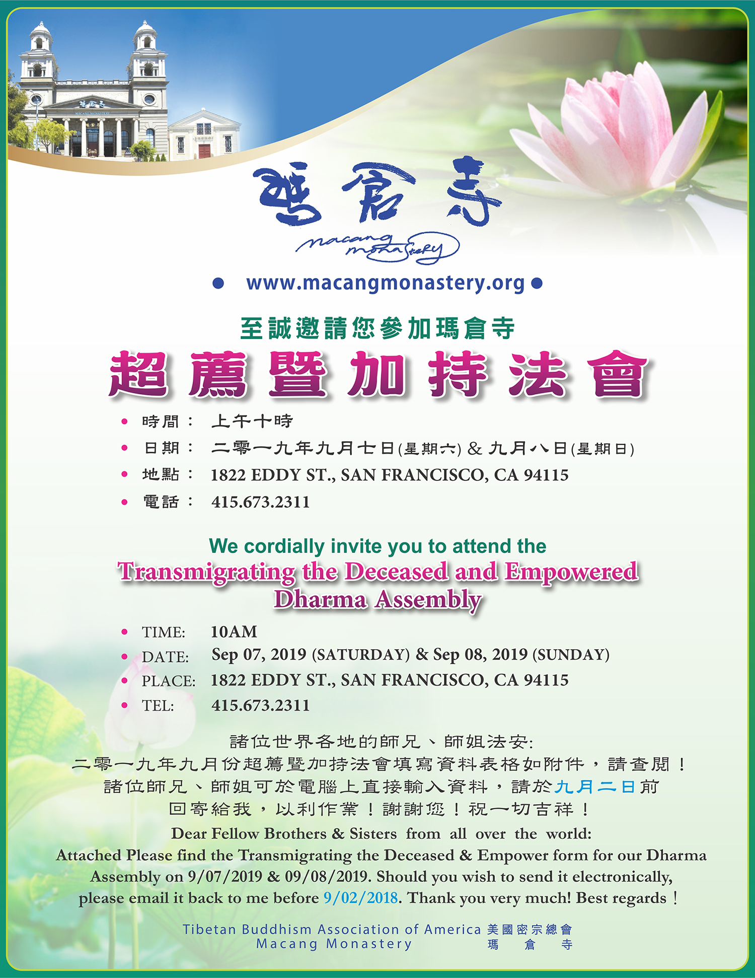 舊金山瑪倉寺祈福法會邀請