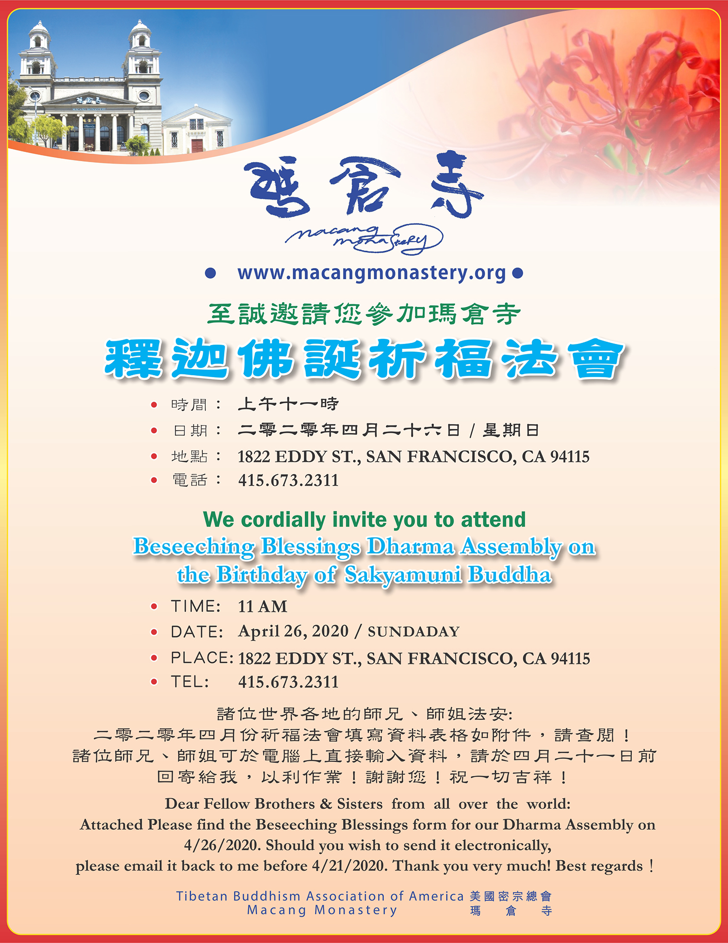舊金山瑪倉寺釋迦佛誕祈福法會邀請